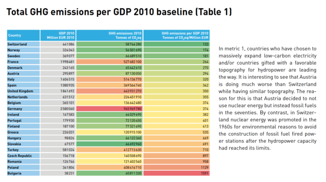 - Climate leaders are countries with hydro-power resources and strong policies to support nuclear energy, alongside renewables. These countries include Switzerland (hydro and nuclear), Norway (hydro) and Sweden (hydro and nuclear). In contrast, antinuclear Austria backs up its hydro capacity with fossil fuels, driving down its overall climate performance.